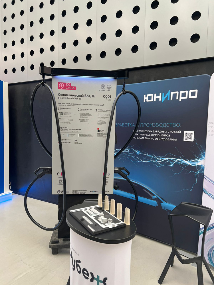 Компания "Юнипро" посетила выставку-форум «Электро//Движение» и представила посетителям своё решение для развития коммерческой зарядной инфраструктуры проекта «Энергия Москвы» – напольную станцию быстрого заряда, позволяющую заряжать электромобили постоянным током мощностью до 150 кВт с использованием стандартов заряда CCS Combo 2 и GB/T.